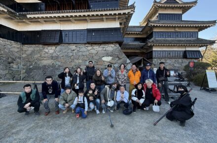 松本城観光と昼食を楽しんだ後、一行は長野県松本市の美ヶ原温泉へ。歴史ある温泉地に佇む旅館『翔峰』で、楽しい夜のひとときを過ごしました。